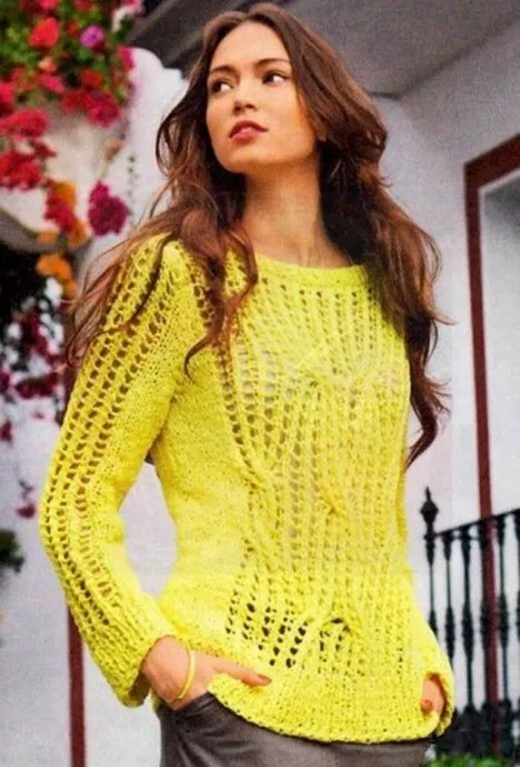 Прозрачный ажурный узор с косами необыкновенно выразителен, а планки в резинку и лицевая гладь помогают держать форму.