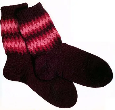 Мне кажется, схема цветов не соответствует. На схеме с 6 по 10 ряд цикламен чередуется с розовым, а на носках розовый только с бордовым