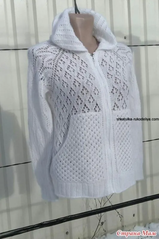 Уютный белый кардиган. Спицы Размеры: 42-44 Вам потребуется: пряжа MOHAIR DELICATE (40% мохер, 60% акрил, 500 м/100 г) - 600 г белого цвета, спицы № 3,5 и № 4. Техника вязания. Резинка 1x1: спиц...