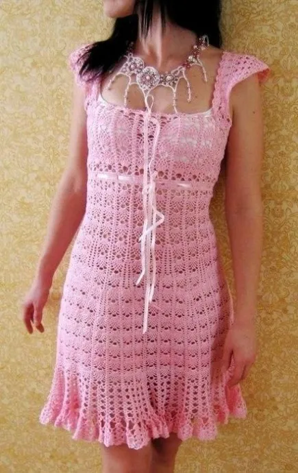 Хотя схемы и не соответствуют самому изделию, ведь видно, что основная схема это ананасные дорожки, и рукав совершенно иной, но их можно взять в копилку для будущих проектов и воспринимать публикацию, как 2 прекрасные идеи, которые можно воплотить в жизнь. Само платьице неплохое.