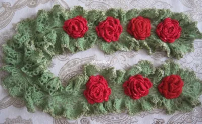 Связала шарфик-оборку, украсила розами. Кто не любит роз, можно обойтись без них.