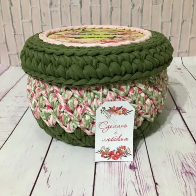 Вязаная корзинка из трикотажной пряжи