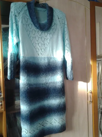 Связала для себя зимнее платье. Нити "Alize"-букле, "Пехорка"-акрил берюза .