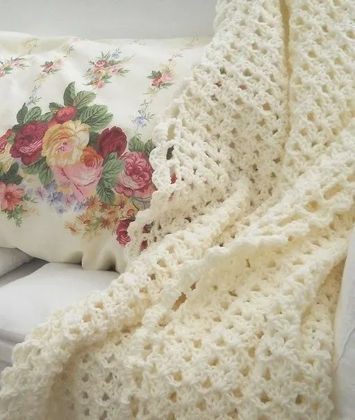 Нежный плед, вяжем крючком