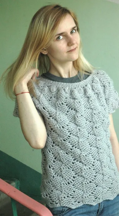 Интересный жилетик! С первого взгляда и не поймёшь, что это крючок!!!