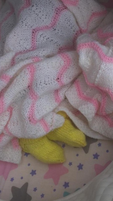 тут уже был плед для новорождённой. Носочки для этой же крохи) Повторюсь, лето в этом году не очень. Посмотрела на погоду, на малышку- надо носочки! Желтенькие поменьше из полушерсти, сиреневые чуть побольше из верблюжей шерсти, тепленькие. Сейчас носят желтенькие, сиреневые на вырост!
