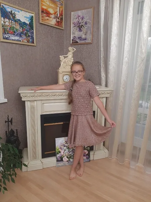 Девочки, по многочисленныи просьбам выставляю фото платья на модели (вязалось для конкурса).