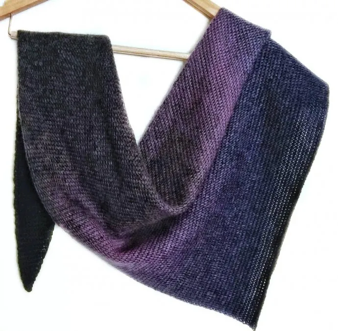 Бактус связан простым тунисским столбиком. Получилась имитация тканого полотна. Форма - треугольник с одним вытянутым концом.