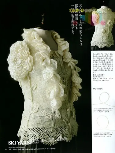 Нарядный жилет спицами и крючком. Модель из японского журнала, поэтому словесного описания нет, нашла только схемы.