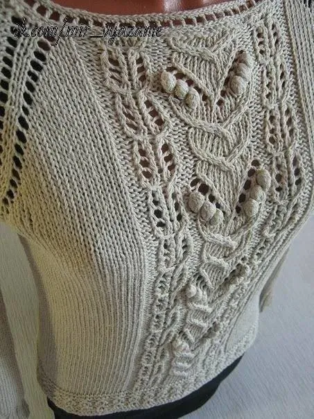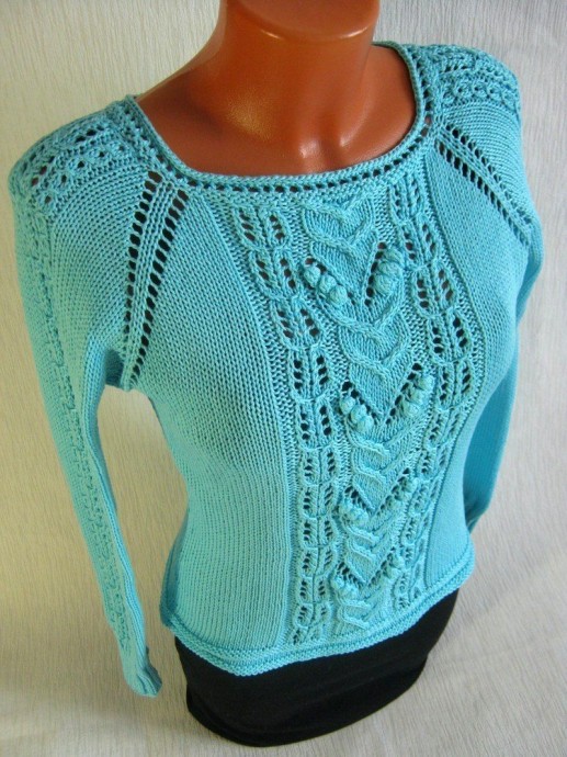 Спицы № 4. Связан сверху регланом, вкруговую, , но связать снизу тоже можно, просто будет другое направление сердечек.