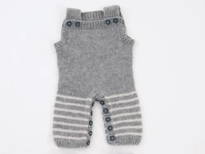 Прекрасным дополнением к этому комбинезону станет серый жакет для новорожденных, также связанный из кашемировой пряжи.