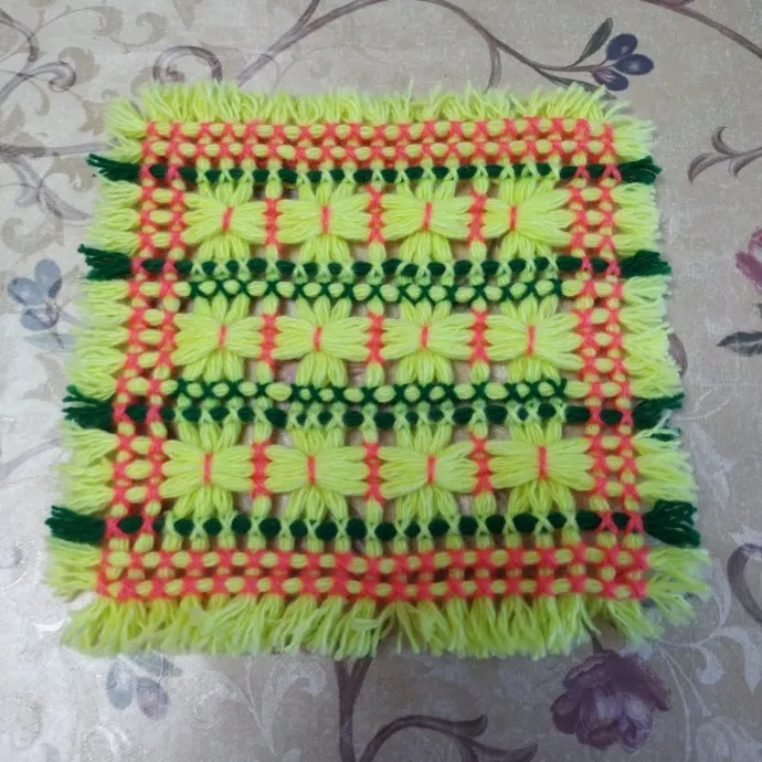 Яркая салфетка плетенная на рамке. Размер 25 на 25 см.Используется акриловая пряжа и булавка.