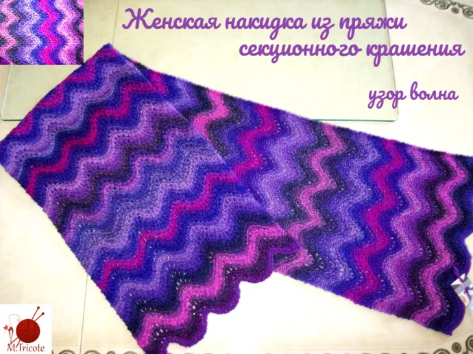 Женская накидка из пряжи секционного крашения.Узор волна.