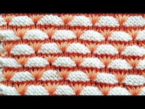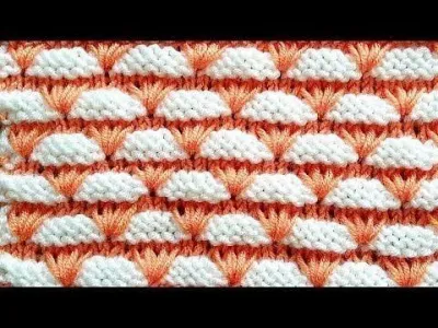 12 ряд.. оранж.нить * 1 лиц., 1 лиц. вытяговаем из нижней петли на 4 ряда ниже, на границе с оранжевым рядом,1 лиц., 1 лиц вытягиваем из той же петли, что и предыдущую, 1 лиц.,1 лиц вытягиваем из той же петли где и предыдущие вытянутые петли, 3 лиц.*
