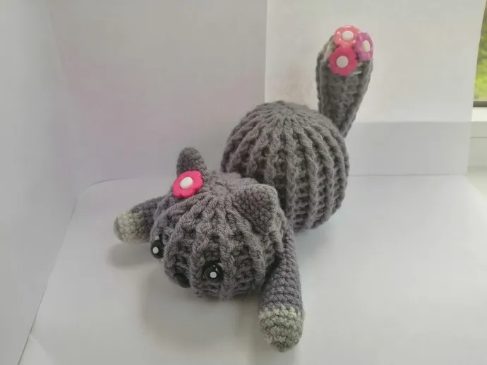 Тоже связан в подарок. МК брала из интернета, кот должен вязаться из зелёных ниток, под кактус. Но я связала из своих остатков, какие были.