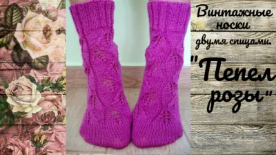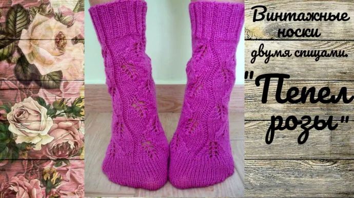 Винтажные носки "ПЕПЕЛ РОЗЫ".Двумя спицами.