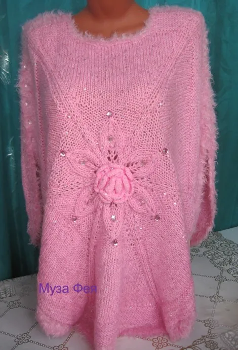 Пончо придумала и связала из турецкого акрила с пайетками и тонкого мохера.Отделка пряжей "Лебяжий пух".