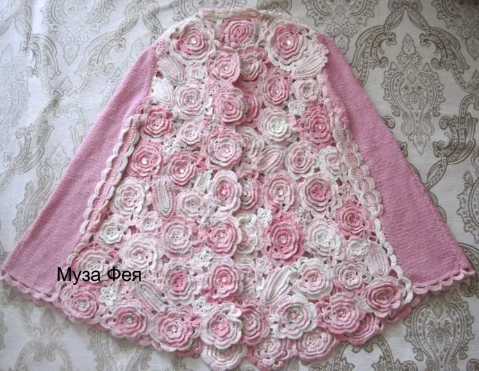И это не классическая ирландия. Я вдохновлялась азиатскими моделями с розами, элементы там сшивают, а не соединяют крючком.