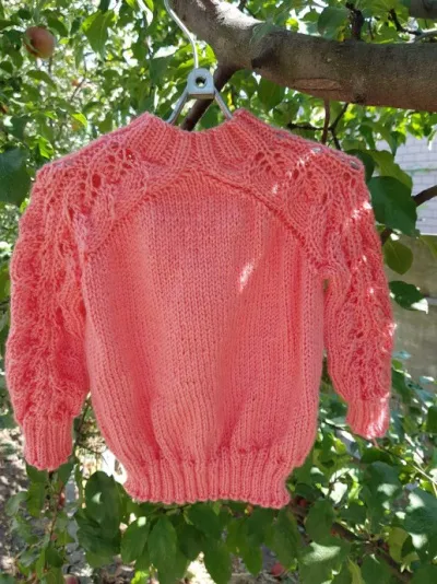 Кофточка двухлетней девочке с ажуром на рукавах и спинке