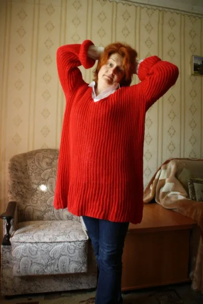 По факту результат мне понравился, носить пуловер буду с удовольствием. Ну и как и всегда, учту на будущее свои ошибки. К ниточкам отношение среднее: не могу сказать, что не понравились, но и прямо сильного восторга не испытала, разве что цвет :))))) Я вообще только сейчас поняла, что несмотря на огромнейшую любовь к красному, у меня впервые повязушка в этом цвете!
