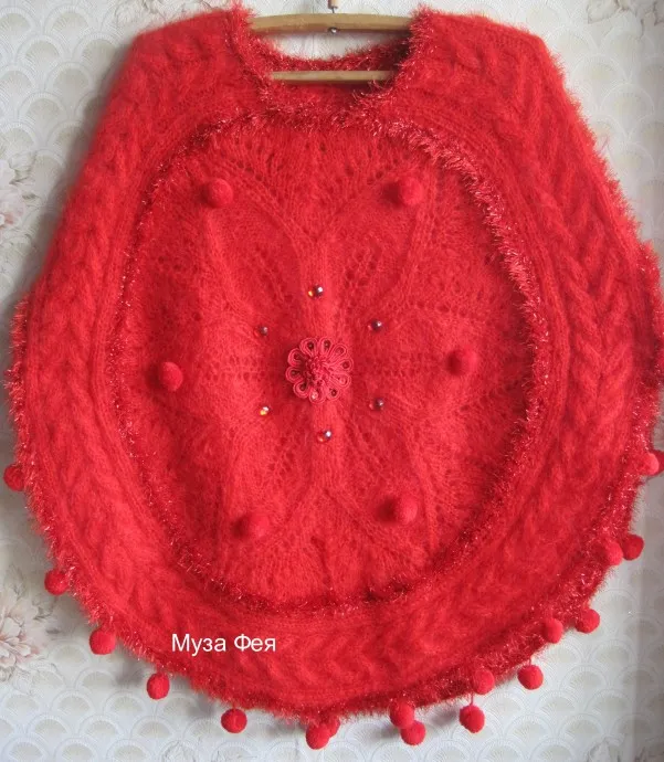 Пончо "Алый цветок" спицамиА это - вам!