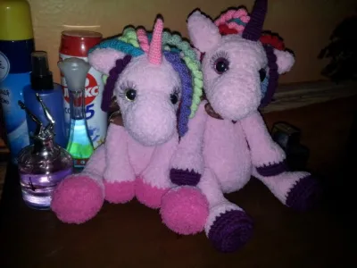 Детская радость; по просьбам друзей. Девочки хотели розовых единорожек с разноцветной гривой. Получила долгожданные ниточки- приступаем. Вяжутся очень быстро, деткам нравятся.