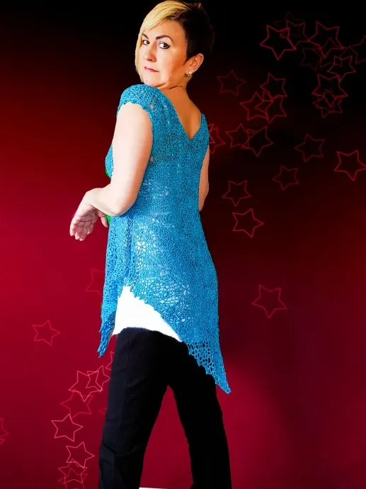 Блуза связанное крючком из вискозных ниток размер 46-56. Связана в стеле разлетайки и подойдет на больших женщин. Имеет характерный шелковый блеск с тонкой люриксовой ниткой. Размеры модели: рост 164, бедра 104, грудь 100. Цена 110 евро. Больше моих работ можете увидеть на Фэйсбуке