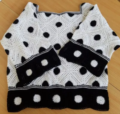 У меня в запасниках давно лежит тонкий хлопок чёрного и белого цвета . Долго не могла решить, что вязать из него. Но сейчас-то можно за идеями в интернет залезть. Вот и я в поисках интересных идей пошла в интернет. На одном из зарубежных сайтов увидела модель, которая мне понравилась. Продавался чёрно-белый джемпер, связанный крючком. Его я и попыталась воспроизвести. Эта модель связана из "бабушкиных квадратов". И хотя "бабушкин квадрат" довольно-таки старая техника вязания крючком, здесь он как-то по-новому заиграл.