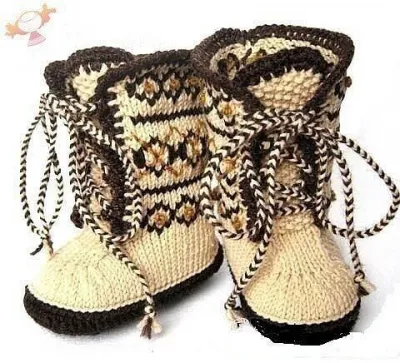 Приложив немножко терпения Вы можете связать для своего малыша или малышки тепленькие и удобные угги «Лапландия» (6-8 месяцев, длина стопы – 11 см).