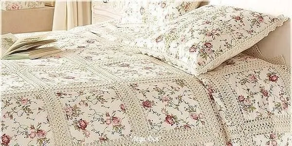 Еще одна интересная идея – сделать подобное покрывало из тканевых и вязаных квадратов, располагая их в шахматном порядке. У меня и подборка схем ажурных квадратных мотивов имеется.