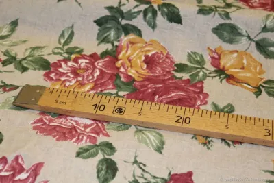 ТКАНЬ ЛЬНЯНАЯ С РОЗАМИ РАСПРОДАЖА