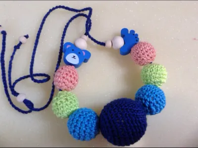 Деревянные бусины, обвязанные хлопковой пряжей на крючке.- это не только украшение для мамы, но и её защита во время кормления малыша, и незаменимая помощь , когда чешутся десны и режутся зубки.
