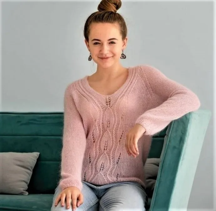 Легкий, нежный пуловер из мохера, да вес этой красоты всего 200гр.