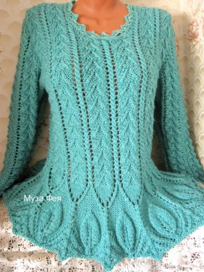Пуловер связан из п/ш пряжи "Бриллиант" в две нити. Получился мягким, пышным и очень теплым.
