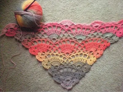 Красивая шаль. Только на образце не увидела соломоновых петель, хотя в схеме они есть