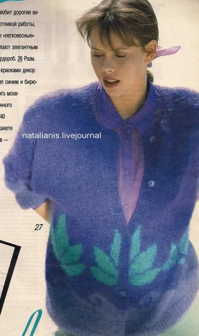 Это давняя модель из "Бурды", живописная и очень красивая. Выполнена в технике интарсия, рисунок вяжется от отдельных клубков.