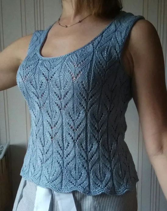- Топ связан из остатков. В две ниточки " Ирис" комбинат им. Кирова. Цвет 7002.