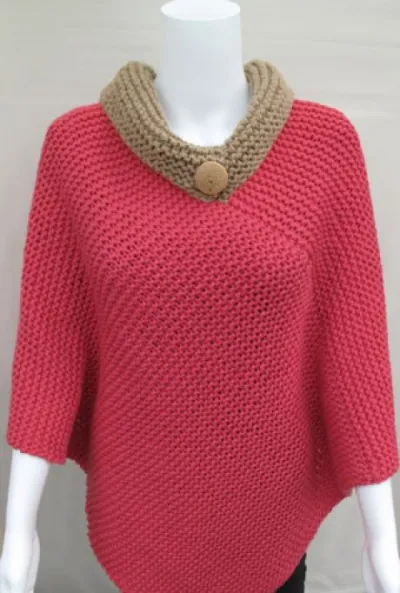 Обратите внимание на это пончо. Оно связано простой платочной вязкой. Платочная вязка мягкая, рыхлая и прекрасно облегает фигуру. В этом пончо можно чувствовать себя как в пуловере.