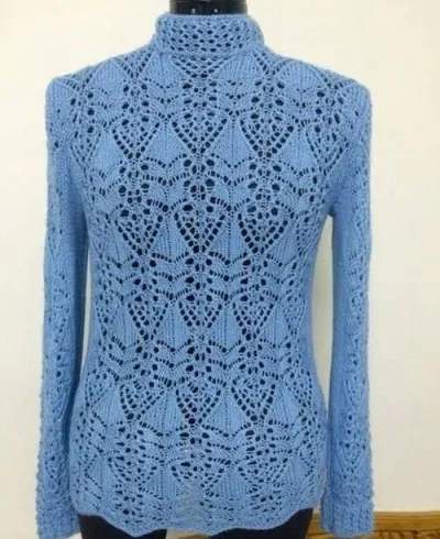 Пуловер с использованием ажурных японских узоров, вяжем спицами