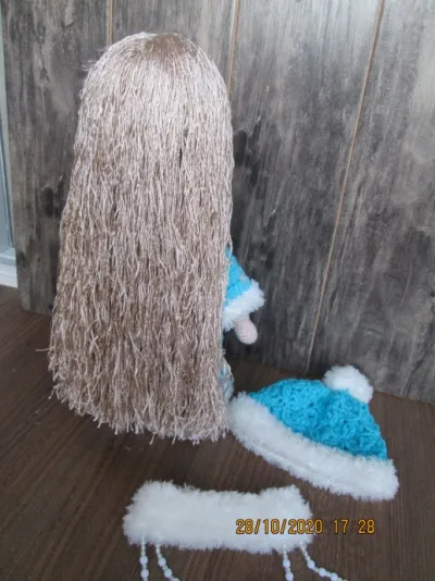 отделка - пряжа Минк, волосы - гарус, отделка - пришивные снежинки