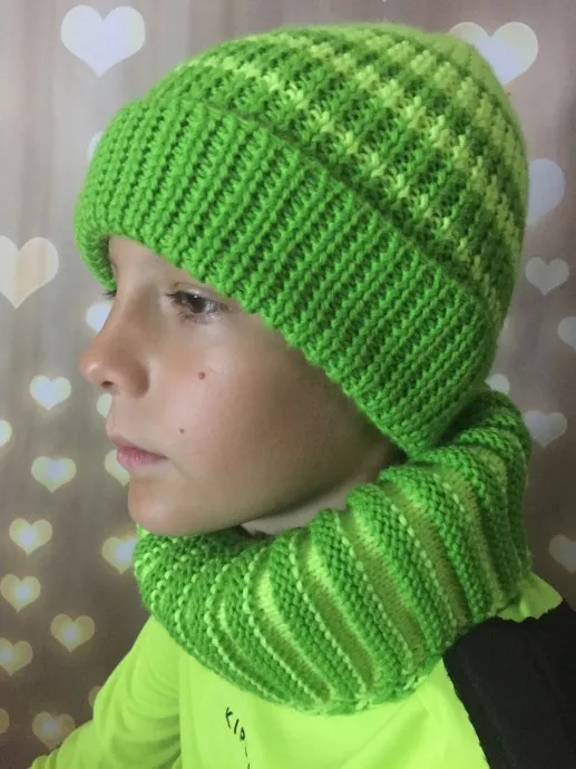 Моя первая проба связать шапку для внука закончилась тем, что получилась шапка для младшей внучки и снуд.