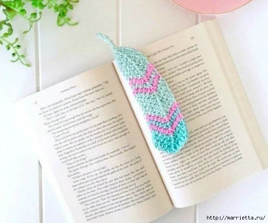 Всем привет! Простенькие в исполнении, но при этом интересные работы! Предлагаю Вашему вниманию шикарные вязаные закладки в виде перышек.