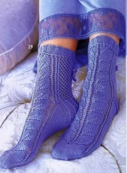 След. ряд убав. 1 лиц., протяжка, лиц. до посл. 3 п. подъема стопы, Л2вм, 1 лиц.—58 п. Провяжите 1 ряд прямо лиц. След. ряд 1 лиц., протяжка, лиц. до посл. 3 п. подъема стопы, Л2вм, 2 лиц., протяжка, лиц. до посл. 3 п. подошвы, Л2вм, 1 лиц. Повторять последних 2 ряда, пока не ост. 30 п. Оставшиеся п. сшейте трикотажным швом.
