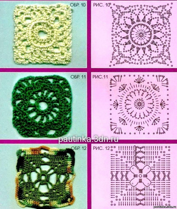 Вязание крючком квадратных мотивов