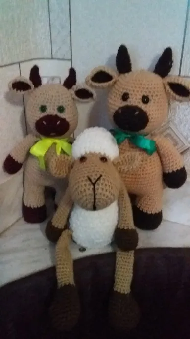 Мои бычки. Первый - для дома. Второй уехал на ПМЖ. А овечку просто с ними посадила)))