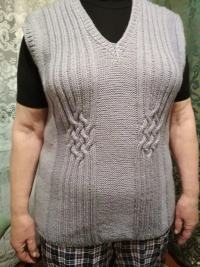 Насчёт простецки — к примеру замиксовать с люреком, вискозой, тонким мохером — уже заиграет по-другому. Подобрать брошечку. Такая жилетка — вне времени, классика, базовая вещь, которую можно обыграть тем, с чем её надеть.