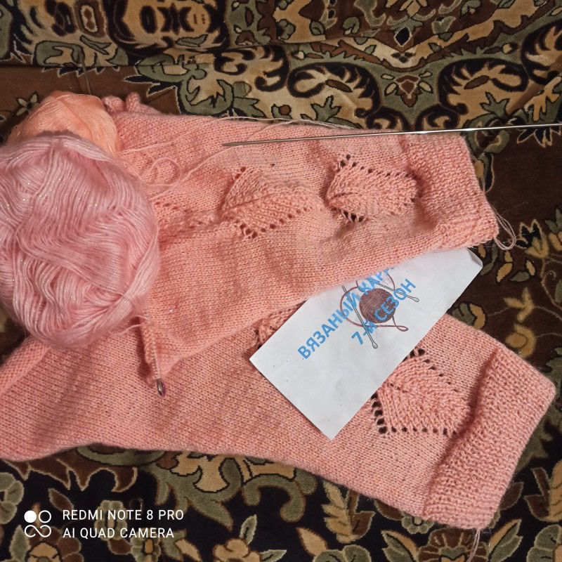 Хочу поделиться с вами новой работой. На заказ не вяжу да и спицами не очень люблю последнее время, т.к. почему-то болят после них. Но соседка очень попросила связать пуловер. Пряжа "Alize angora gold simli" 100г/500 м и "Ареола 10" 50 г/400 м. Расход Ализе 250 г и Ареола 150 г. Спицы 3.