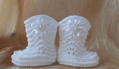 Набираете 50петель. 1р- 23лиц. нак. 4лиц. нак. 23лиц . 2,4,6,8ряды лиц. 3р-24лиц. нак 4лиц. нак. 24лиц. 5ряд- 25лиц. нак. 4лиц. нак. 25лиц. 7ряд- 26лиц. нак 4лиц. нак. 26 лиц. на спице -58петель. Далее вяжем зубчики:1р-лиц. 2р-изн. 3р-лиц. 4р-изн. 5р-2лиц вместе,1нак, так до конца ряда. 6,8р-изн. 7,9р-лиц. сложить пополам и увидите что получится. А чтобы оно не расправлялось и нужно сшить. Потом 10 рядов лицевыми. Далее вяжем средние 12 как пятку. И когда на спице останется 36 петель вяжем любым рисунком высоту пинетки. Когда свяжем, сшиваем пинетку.