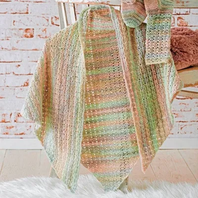 Обязательно приобретите для него пряжу секционного крашения и тогда платок получится таким же роскошным и в нежных пастельных тонах