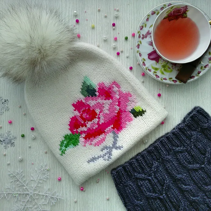Давно такая шапочка была у меня в "хотелках", долго выбирала схему розы, хотелось, чтобы роза смотрелась явственно, не расплывчато, думаю, что задуманное получилось. Шапочку и снуд стирала в машинке с кондиционером для волос, пряжа немного распушилась и стала ещё мягче. Комплект выгуливала при -4, осталась довольна). Теперь хочется связать ещё подобную шапочку, но из другой пряжи, в другом цвете (сером, голубом) и изменить схему вышивки.